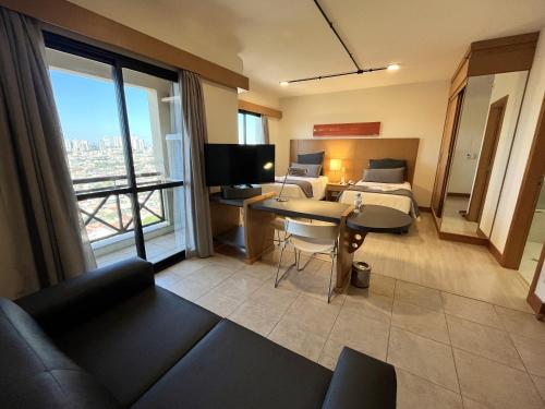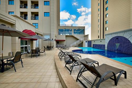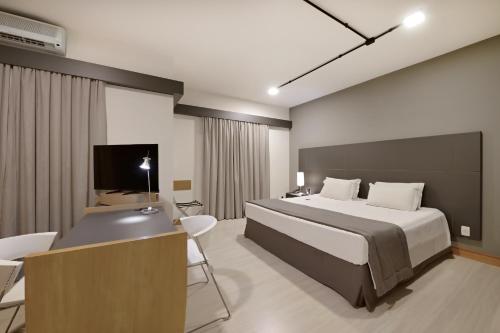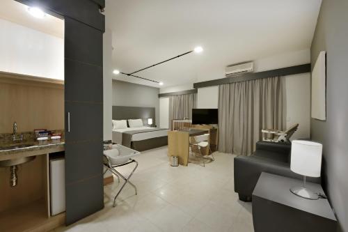 With an outdoor pool, bar and sunloungers, Araucária Plaza is a 10-minute drive from Ribeirão Preto centre. It offers air-conditioned suites with room service. A sauna, a 24-hour front desk and a gym are also available. Featuring an LCD cable TV, mi...